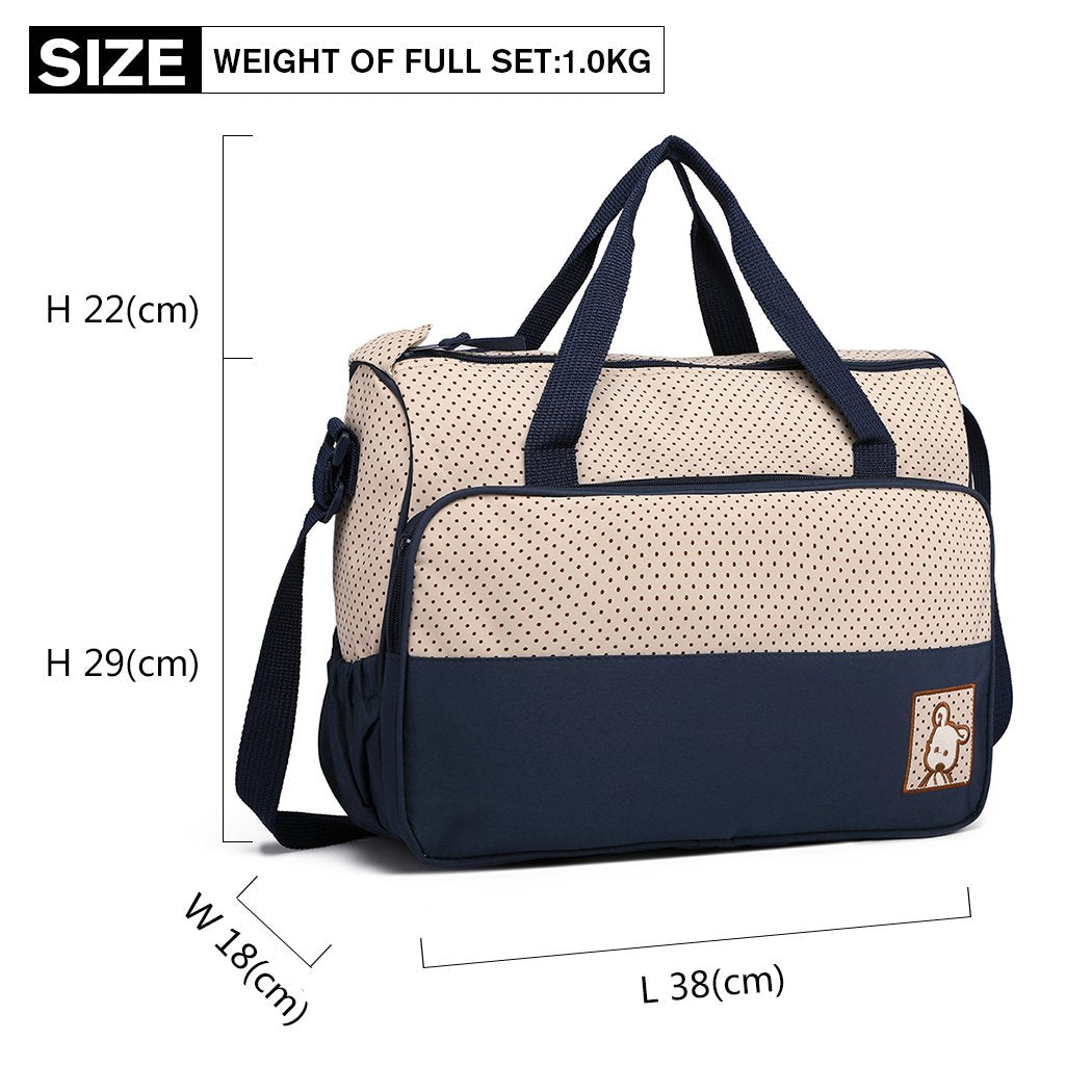 - SET COMPLETO 5 EN 1: Incluye bolso grande 38×18×29 cm, bolso mediano 25×14×25 cm, porta biberón isotérmico, neceser almuerzo y cambiador 54×30 cm; todo coordinado en elegante beige con lunares, ideal para mamás y papás activos que buscan una bolsa cambiador bebé espaciosa y con estilo para el día a día, paseos, hospital o viaje; organizas pañales, toallitas, ropa, juguetes y accesorios sin perder nada. Poliéster premium lavable con paño húmedo mantiene el color y la forma sin esfuerzo.